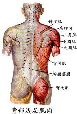 斜方肌,肩靠脊    背阔肌,能接力