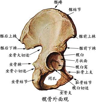 (1)髋骨:由髂骨、耻骨、坐骨三骨在髋臼处汇合而成。 (1) hip: the ilium, pubis, ischium three acetabular bone at the confluence.