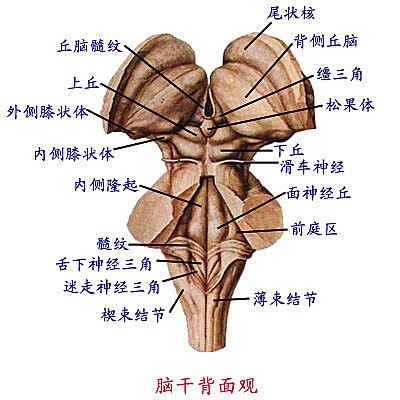 (1)延髓:主要结构有薄束结节、楔束结节。 (1) medulla oblongata: The main structure of a thin beam nodules, nodules wedge beam.