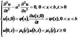 由此可按t增加的方向逐排求解.在第0排上ui0的值由初值(ix)确定,j+1排ui,j+1的值可由第j排的三点(i+1,j),(i,j),(i-1,j)上的值ui+1,j, uij,ui-1,j确定,而u0,j+1,un,j+1已由边界条件1((j+1)t)及2((j+1)t)给定,于是可逐排计算一切节点上的uij值.当(x), 1(x)和2(x)充分光滑,且