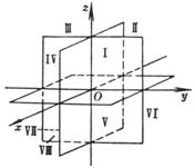 Ox is the horizontal axis, Oy is the vertical axis, Oz is the vertical axis M ( x , y , z ) x is the abscissa y is the ordinate z is the vertical coordinate I to VIII are eight hexagram limits, and the symbols of the coordinates x , y , and z of points in each hexagram limit are : |