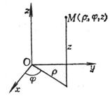 r , j are the polar coordinates of the projection of point M on the Oxy plane, and z is the distance from point M to the Oxy plane . Here 0 £ r < ¥ - ¥ < j < ¥ - ¥ < z < ¥ |